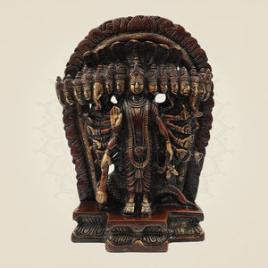 This 10.5" hand-painted brass idol of Vishnu Dashavatar captures the ten divine incarnations of Lord Vishnu with intricate detail and craftsmanship. Ideal for temple decor or personal worship, it serves as a powerful spiritual centerpiece symbolizing protection and restoration of...