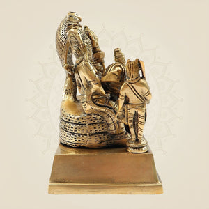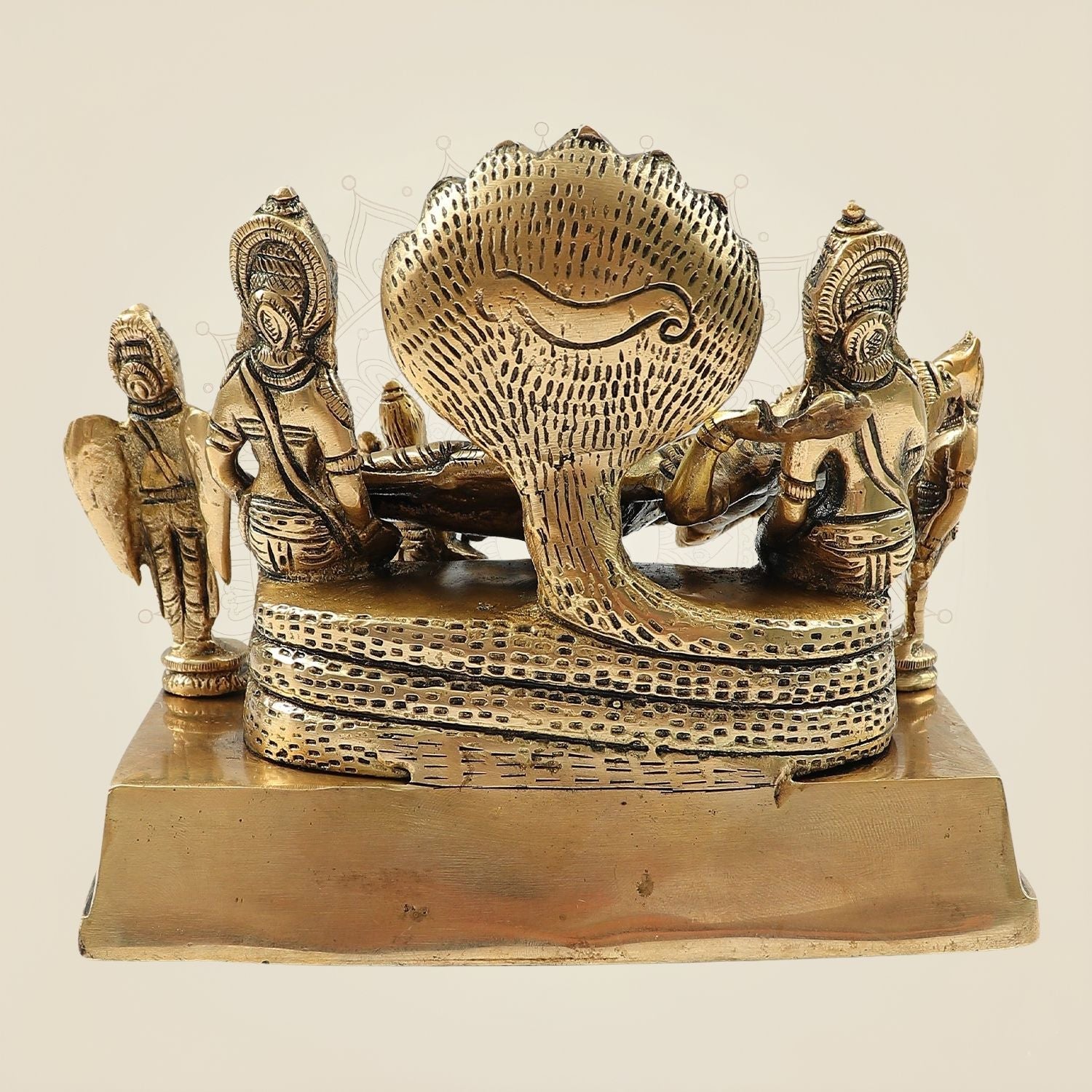 This finely crafted 5.5-inch brass Vishnu Parivar idol features Lord Vishnu accompanied by Brahma, Sridevi, Bhudevi, Garuda, and Narad, symbolizing divine harmony and cosmic balance. The detailed workmanship captures each figure with precision, making it a valuable piece for worship or collection. Its durable brass composition ensures longevity, while its spiritual significance enhances any sacred space. Perfect for devotees seeking to honor the entire Vishnu family in one exquisite representation.