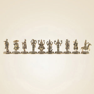 Experience the divine artistry of the Dasavatharam Brass Set, featuring ten meticulously handcrafted miniature statues, each standing 2.5 inches tall. Representing the ten avatars of Vishnu, this set captures intricate details with precision, making it a perfect collection for devotees...