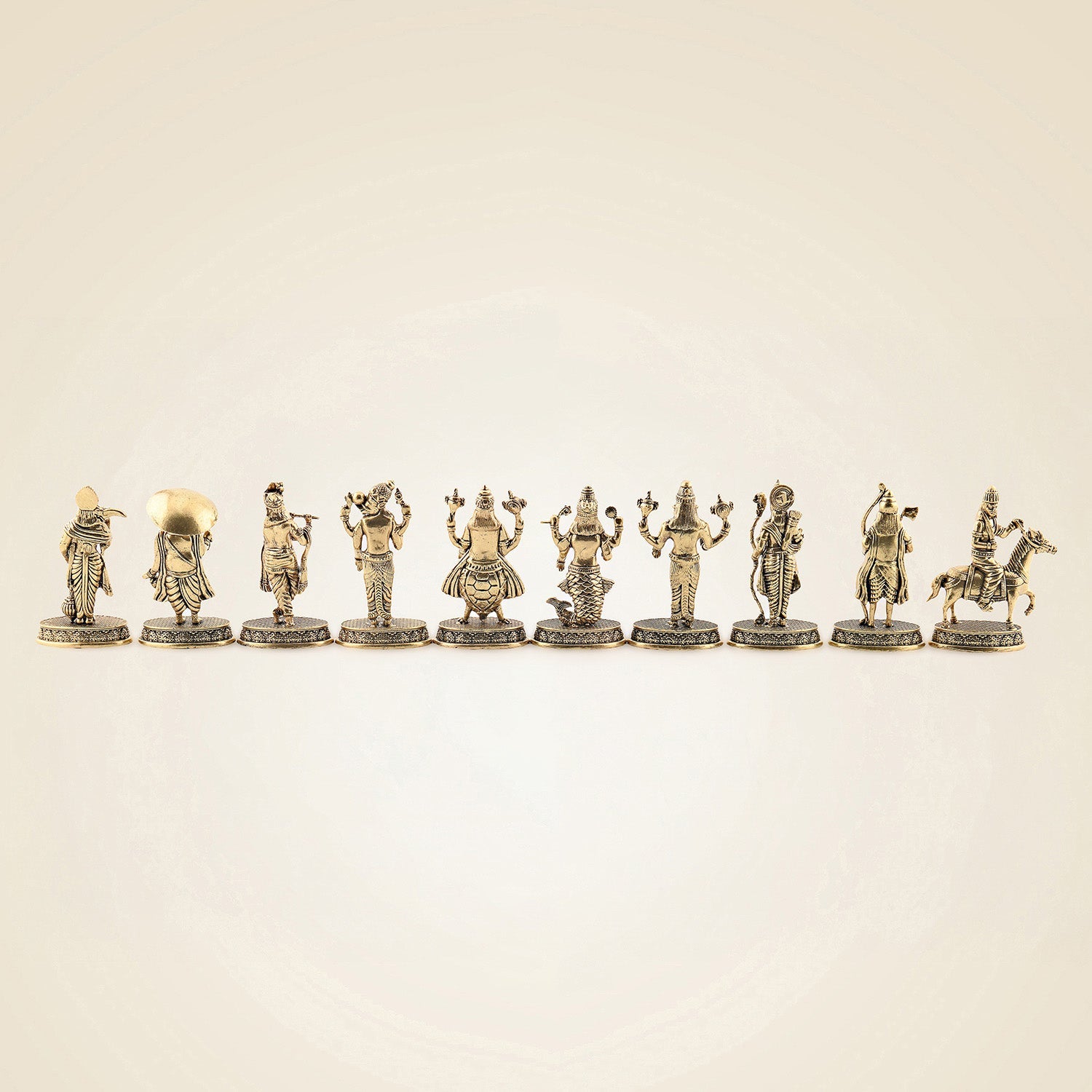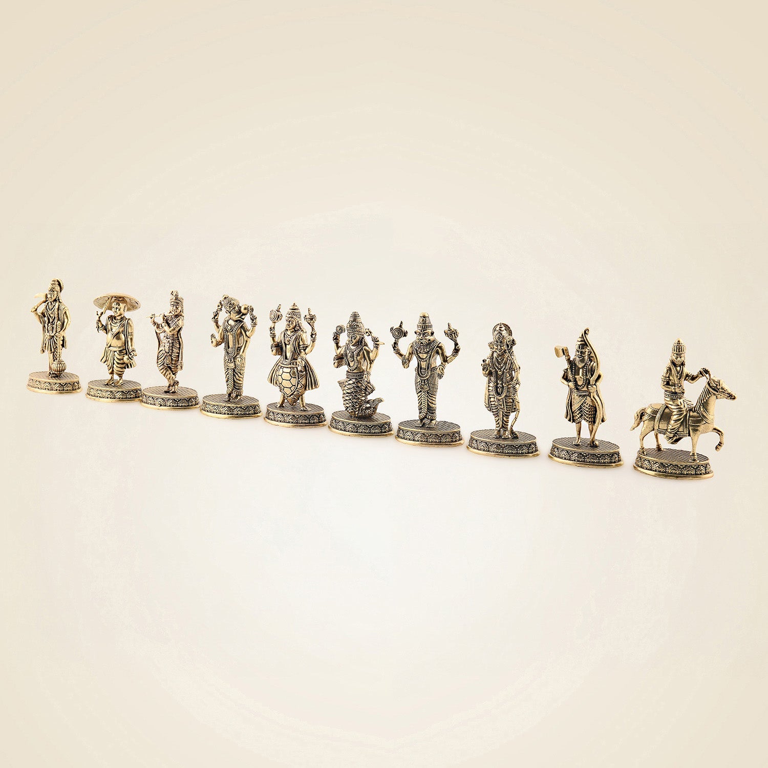 Dasavatharam Brass Set – 10 Avatars of Vishnu, Handcrafted Miniature Statues 2.5″