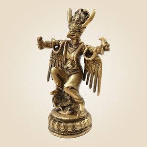 This 8-inch Sacred Brass Garuda Idol embodies the revered vehicle of Lord Vishnu, crafted to elevate both temple sanctity and home décor. Made from high-quality brass, it offers durability and a radiant finish that enhances spiritual ambiance. Its intricate detailing reflects expert craftsmanship, making it a meaningful centerpiece for worship or a distinguished decorative accent. Ideal for those seeking to honor tradition while enriching their living space with cultural artistry.