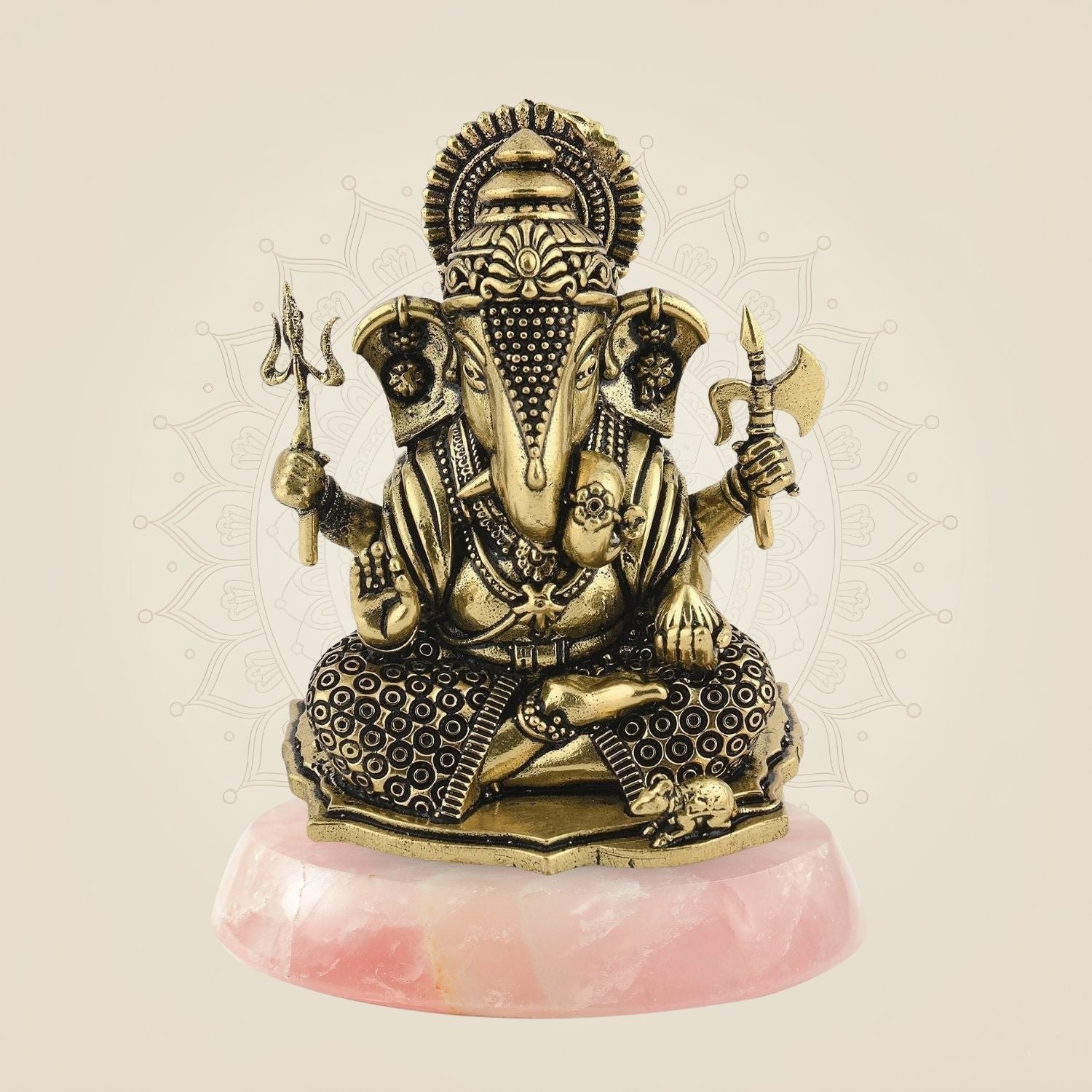 3" Blessing Sitting Ganesha Brass Idol - Statue for Pooja, Wealth & Goodness